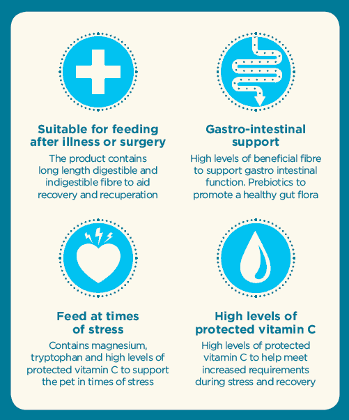 After illness or surgery - the product contains long length digestible and indigestible fibre to aid recovery and recuperation and is ideal for use after surgery or when a rabbit of guinea pig is unwell or debilitated.